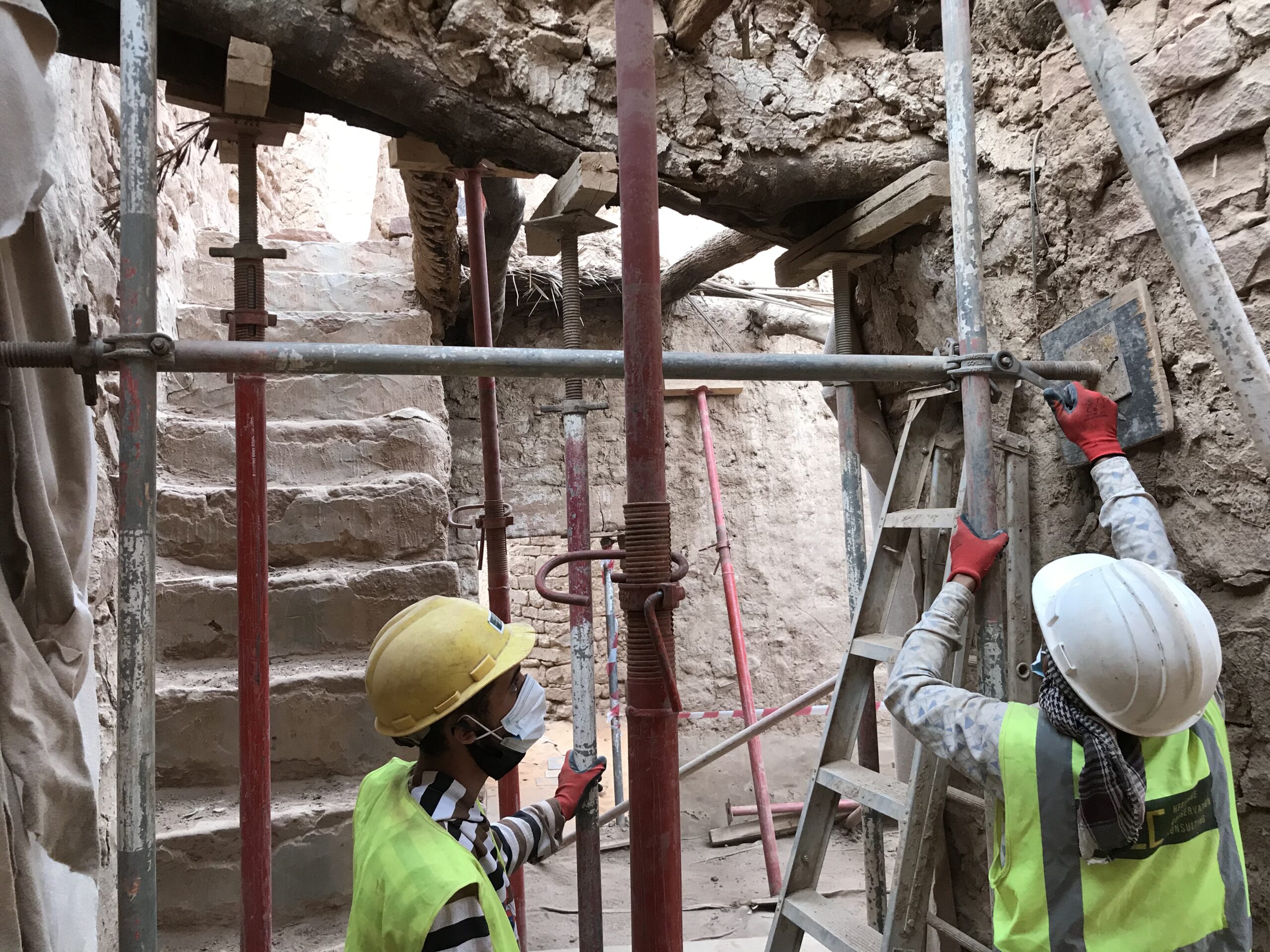 The Blue Street Project was part of the interventions for the conservation of AlUla Old Town. HCC has been engaged to implement the installation of temporary propping, shoring and scaffolding systems, to stabilize all the structures at risk of collapse, before the launch of archaeological cleaning, and to execute remedial works for structural stabilization and preventive conservation treatment for all structures.